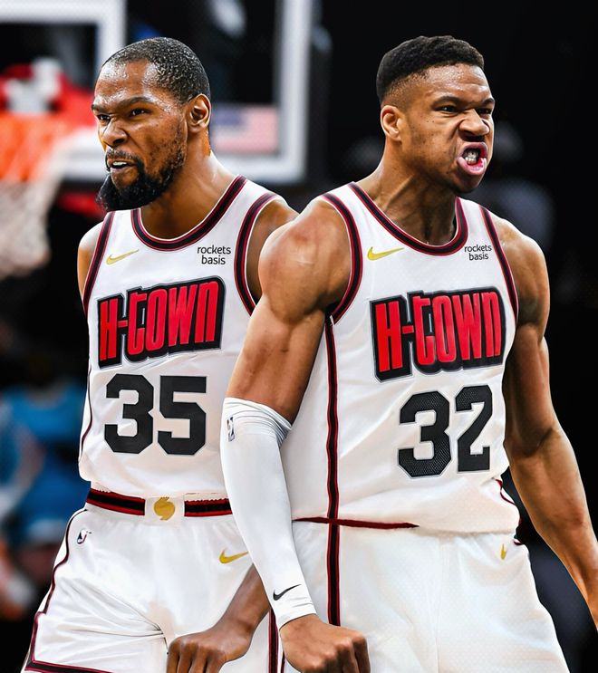 字母哥+杜兰特的锋线巨头组合,论战力,不亚于上面任何的组合,冲击力直接拉满。